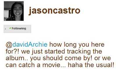 Jason Castro, ex-American Idol e velho amigo de corrida e canoagens de David, manda uma mensagem pelo Twitter: