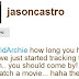 Jason Castro , ex-American Idol e velho amigo de corrida e canoagens de David, manda uma mensagem pelo Twitter: Há quanto tempo você est...
